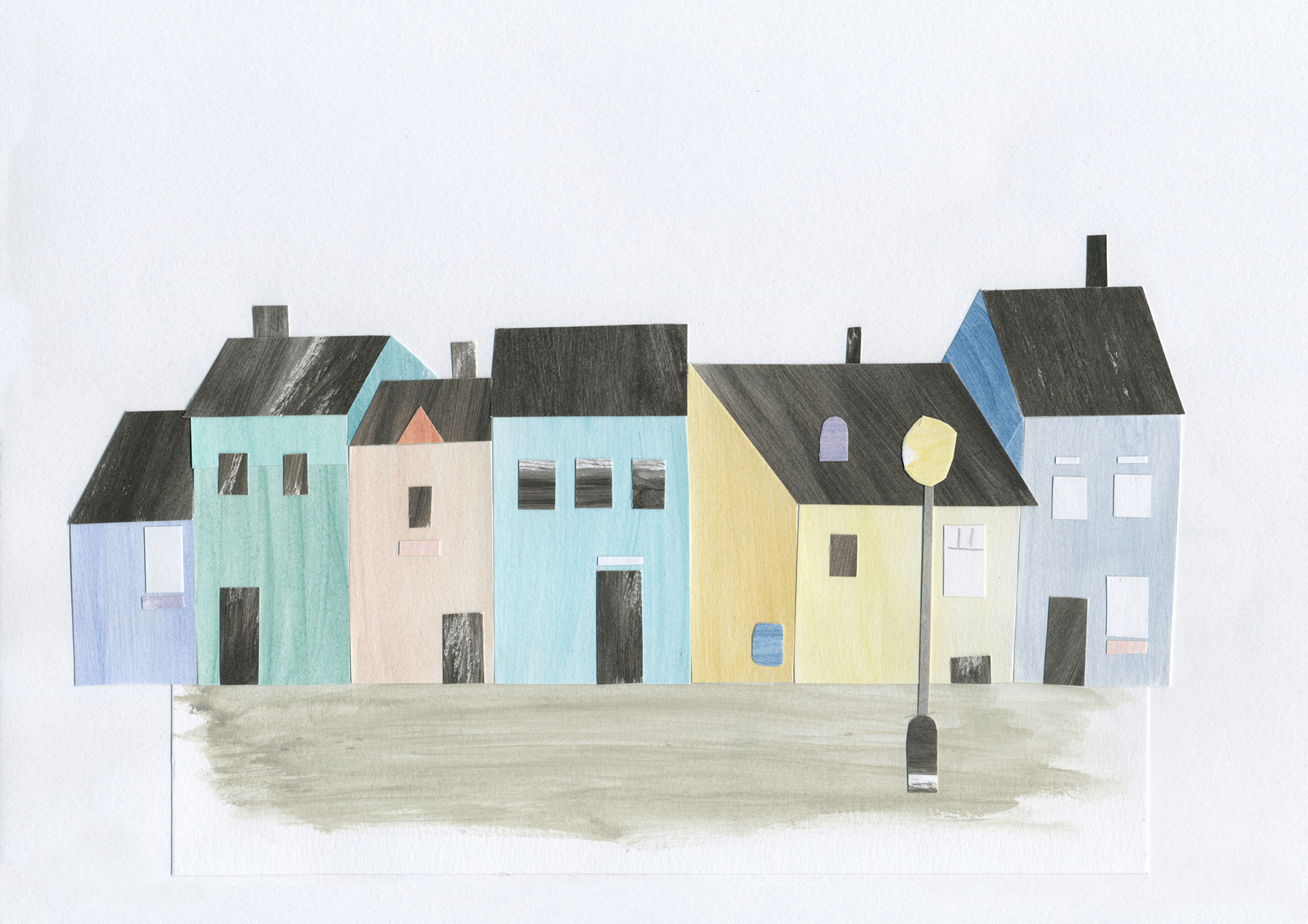 Finding the right style for the backgrounds was even more of a challenge. Everything didn't look right and I struggled a lot. I knew it had to be a small town with 2-3 story houses but all my first attempts were lacking something.
